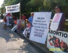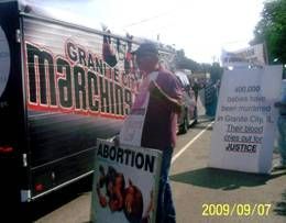 More politicians than ever before walked up, shook hands with us, and looked at the signs we held. The Madison County sheriff shook our hands and said, “I’m glad you all are here.” Daniel and I held the banner on stilts which read: “Stop Abortion in Granite City.” God gave us wisdom to outsmart the devil and his troublemakers.