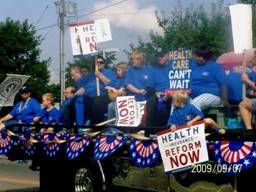 Then there was the peppering of ObamaCare “Health reform NOW!” signs. It was pitiful when they propped up a young girl with Down’s syndrome on a float decorated in ObamaCare health reform signs. Dummies…didn’t they read the fine print on this socialist health reform propaganda? This little girl would be exterminated and considered a worthless parasite in society, aka a “burden” in the health system. Their value of life will be determined by their worth. The Führer and his jack-booted thugs will determine who gets to live and who gets to die. The feeble, sick, and elderly will be the first to go.