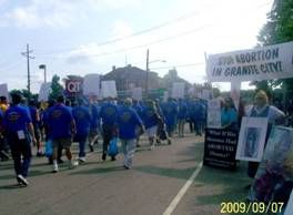 Some laborers shook their heads; others made snide remarks such as, “Why don’t they go somewhere else?” “Because little future laborers and union members are being dismembered and flushed down the sewers just two blocks over. Do you care?” Silence… Numerous marchers actually waved to us and encouraged us saying, “Thank you. We’re glad you’re here,” and, “Keep doing what you’re doing.”