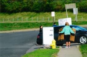 Another woman came over to us holding her hair in the blowing winds, diamonds dripping off her wrist and ears. She wanted us to explain Mosaic's policies. She kept insisting that we talk to her. We informed her for years we have intercepted preg girls coming from Mosaic after being turned away. Some that are substance abusers are told "it would be better to undergo an abortion" then bring a drug baby into the world. This is wrong. We informed her how hard it is for a preg girl to get help at this prego center. 'Pregnant girls have to complete classes and come to Mosaic at the onset of their pregnancy or they refuse them. A lot of girls have jobs or school or other children how are they supposed to take classes to get help? A lot don't have transportation. Then Daniel handed her the Catholic times article where Mosaic lied and misrepresented themselves as being a Catholic organization and their readers should be supporting them. She didn't like that untruth. She took the article with her and wished us some resolve.