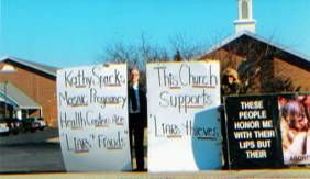 Well, the scripture declares, “Anyone who knows the good they ought to do and does not, sins,” and, the pastor of this particular church knew something was terribly wrong concerning his congregation’s support of a supposed pro-life organization. He knew alright, but his members didn’t. That’s why we came; to enlighten them. You see, what his “flock” didn’t know was that they were being duped into thinking that their hard-earned donations to a supposed “Pregnancy Center” were saving babies from abortion and helping pregnant women when, in actuality, incredibly little is done in this vital area. Yes, we have been exposing this particular “health center” for years and, although they used to make a small attempt to help pregnant women, now the  Mosaic Pregnancy Health Center does even less; much less; all the while asking donations from susceptible church-goers who think their money is actually doing some good. On the other hand, our daily ministry has been overwhelmed with incoming abortion bound women disgusted that they could not receive any assistance in order to keep their pregnancies. They don’t trust, and they’ve been through the ringer, so to speak, and it’s just easier to get an abortion. And so another baby will die because of a fraud who collects money donated to go directly to save babies and instead it pays her $80.000 a year salary and for rehabbing offices that don’t exist. Perpetual fundraising campaigns for a state of the art ultrasound tour bus, that is never in use except photo-ops, it’s ridiculous. For this church to support this chameleon is wrong and it’s sinful.