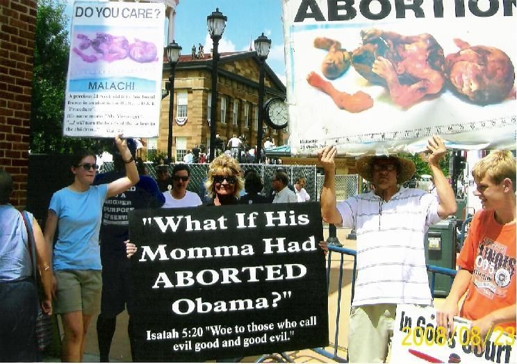 One man attempted to block our signs with his body but was unsuccessful as we raised the truth high in the air for all to see. As the crowd stood in amazement reading our signs, we proclaimed, “A vote for Obama is a vote for more dead babies,” and we questioned, “What if his momma had aborted Obama?” The look on their faces said it all. They were shocked to see what the Obama-Biden ticket represents and stands for. Isaiah 3:9 “The look on their faces testifies against them.”