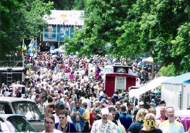 This two day event drew an approximate crowd of over 80,000 revelers under threatening skies. On Saturday, commitment ceremonies and a pet parade was the draw. Sunday marked the big parade full of gay churches, sponsors, gay bars, gay & transgender organizations, the ACLU, Militant gay youth group, Obama supporters, gay politicians and/or political supporters of gay rights, Planned Parenthood and NARAL representation to mention a few. This year’s set up was different. There were barricades along the parade route. And there were more female police officers.