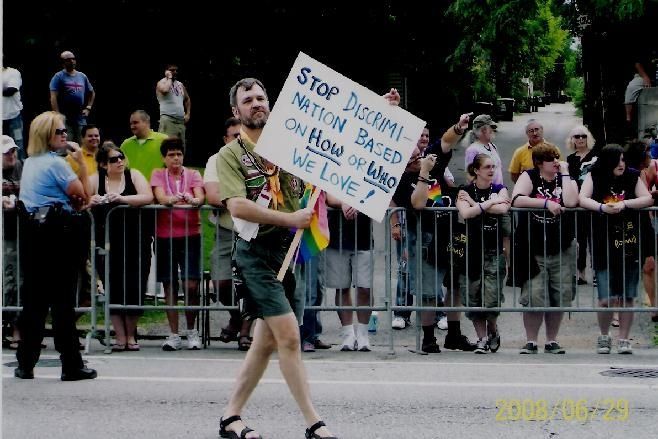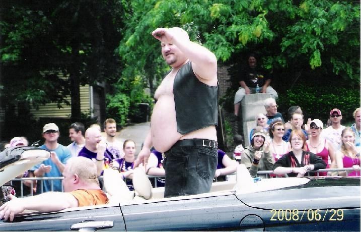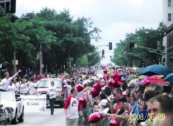 As we descended upon Tower Grove Park , you could feel the oppression and the smell of alcohol filled the air. It was only 10:00 a.m. We had a few religious zealots dressed like Jesus screaming hell fire and damnation to passersby. One woman turned and screamed back, “Just one day out of the year, leave us alone,” and continued walking down the parade route. A young lesbian woman commented, “Oh no, I hear that all week. My daddy’s a pastor,” and walked across the street.