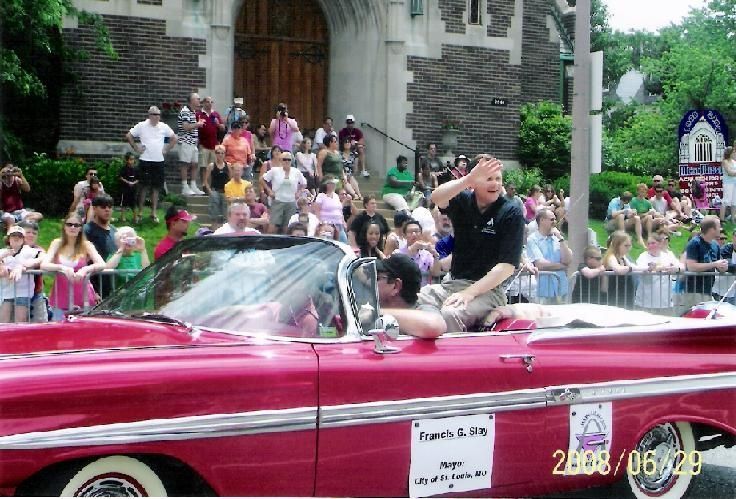 As the parade got underway, the crowds swelled and pushed us up at the turn of the parade route into the park where the entertainment main stage, booths, and food vendors were located. The barricades made it impossible to walk out and personally rebuke the honorable Mayor Francis Slay who was a no-show last year, but with the added protection, he led this abomination this year. The police chief handed out plastic badges to the crowds.