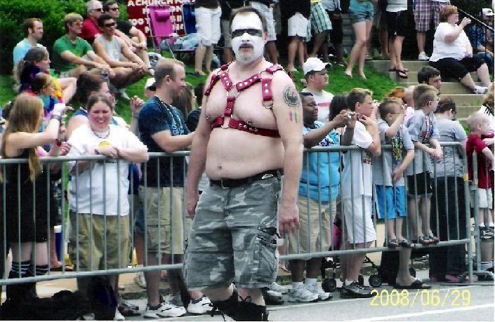 There was a noticeably increase of Black Americans in attendance, not only in the crowds, but in the parade. If only they realized the immorality that is wiping out their race. There was a feeling of sadness as we watched the same drag queens, only more wrinkled and after the skies opened with a downpour, their makeup was running off their drawn faces. The gay rodeo group drew applause as the gay men roped one another and marched in the rain. Mr. Leather was a little overweight this year.
