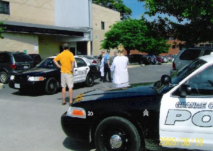 The deathcamp assistant director Deb Wiehart came out and refused to give the attacker’s name. The local police asked the Michaels to move their ultrasound van as it was parked halfway in the yellow zone. We noticed several other cars parked in the yellow zone, one completely blocking a fire hydrant, yet only the ultrasound van was asked to move.